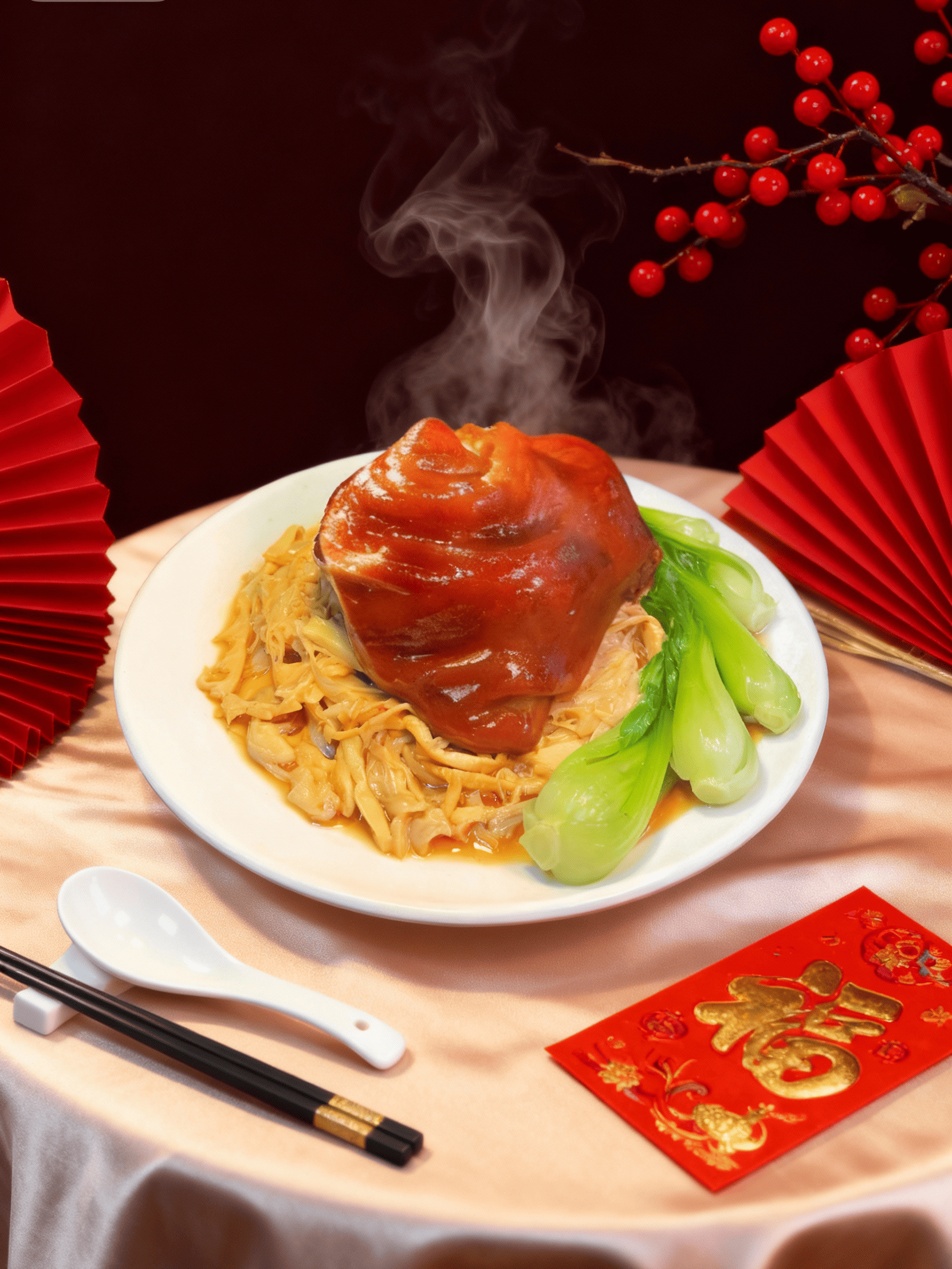 嚴選厚實飽滿的豬蹄膀,經繁複工序慢火燉煮,搭配手工乾筍絲、蔥段、薑片、八角、冰糖與黑糖,